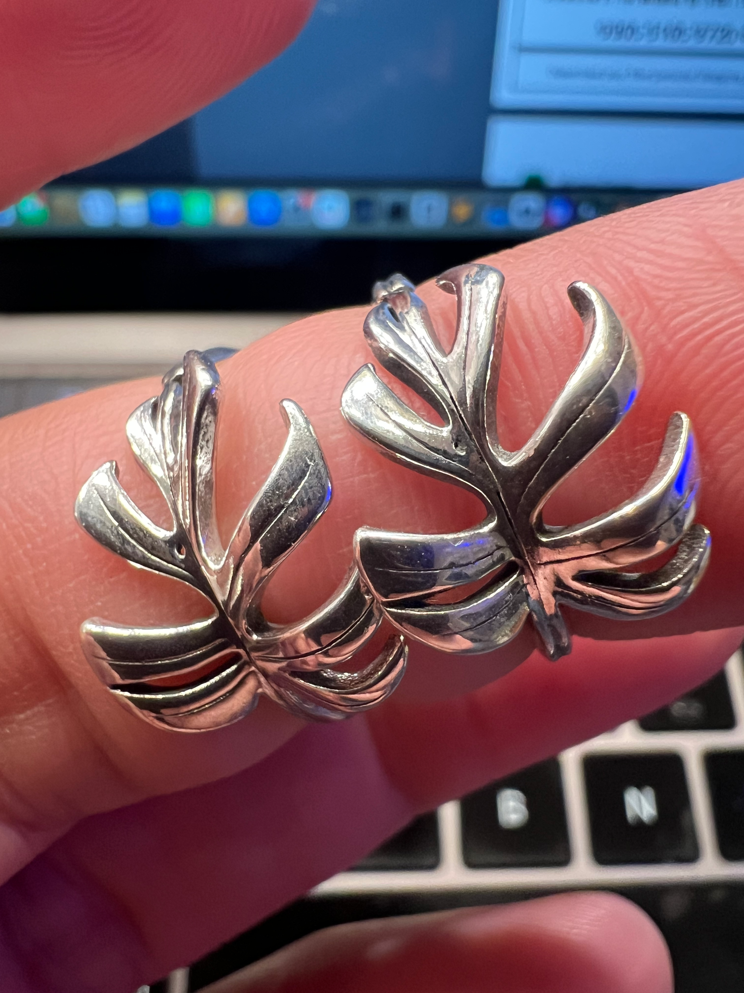 The intricate leaf is lost wax cast in 925 sterling silver. Ideal for nature lovers or those with a passion for unique, botanical jewelry, these earrings add a touch of sophistication to both casual and formal outfits. Whether worn as a statement piece or a subtle accent, they’re a perfect addition to any plant lover's jewelry collection.